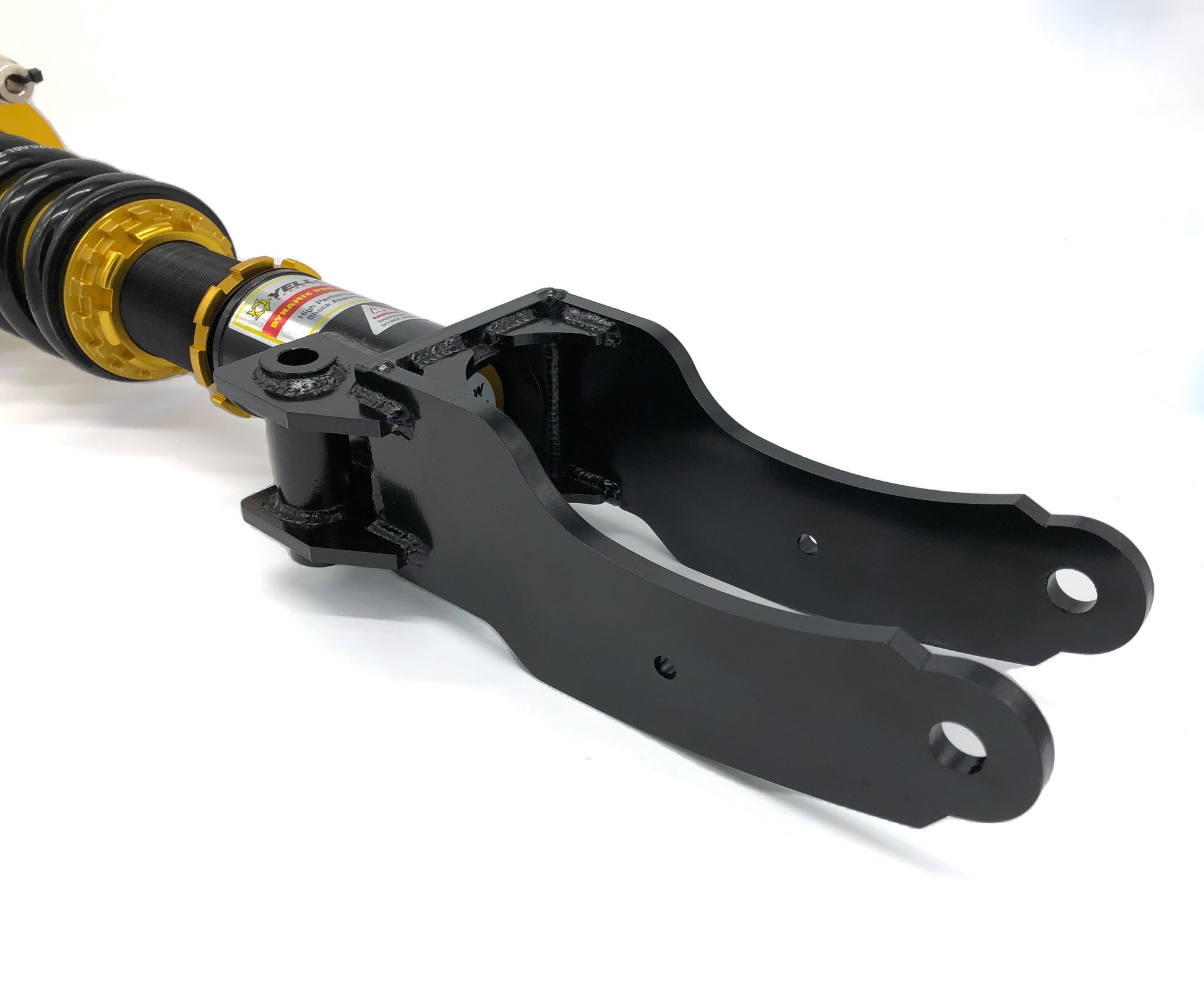 A steel lower bracket is utilized for MacPherson strut type to increase rigidity for safety (where applicable). For most MacPherson strut models, the brake line bracket is welded manually perfectly to the steel lower mount. A high quality forged alloy aluminum lower bracket is used for Double-A Arm strut type (where applicable). The steel/aluminum lower bracket is processed with electroplated/ anodized surface treatment to prevent corrosion or rust in the harsh conditions of motorsport. The vehicle ride height can be adjusted easily with the lower bracket by winding up and down to drop and raise. With the lower bracket, it allows maximum suspension travel without affecting the shock stroke.